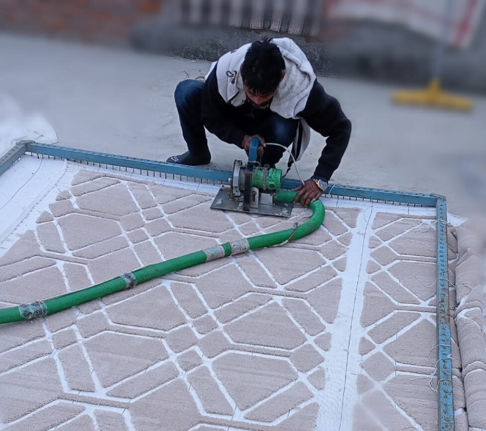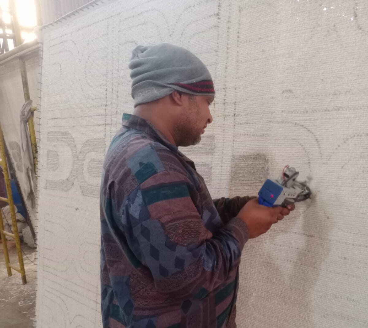 Applies latex to the rug with great care and precision which strengthens the rugs grip and further enhances its quality. his work is especially important for wedding rugs as they require not only beauty but also durability